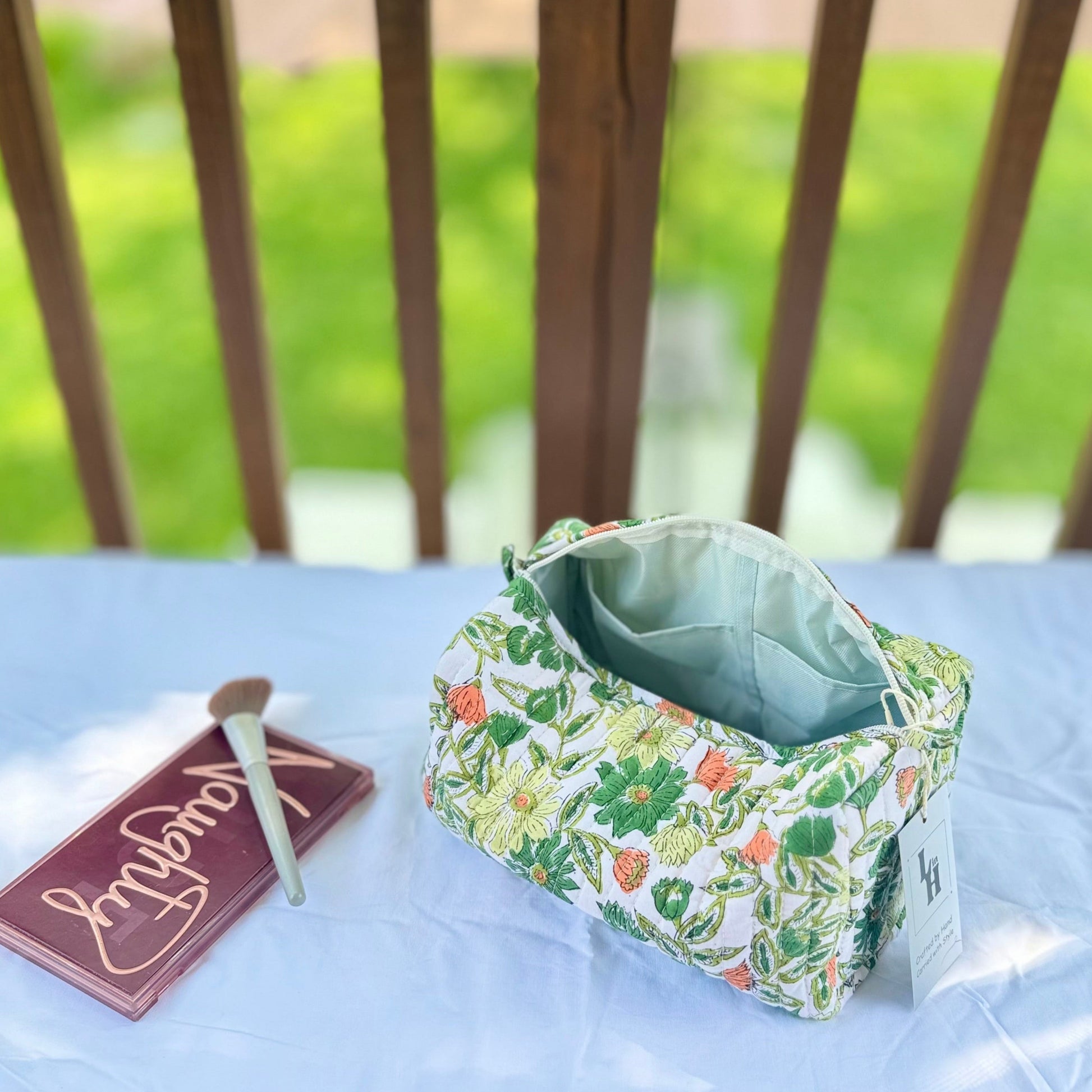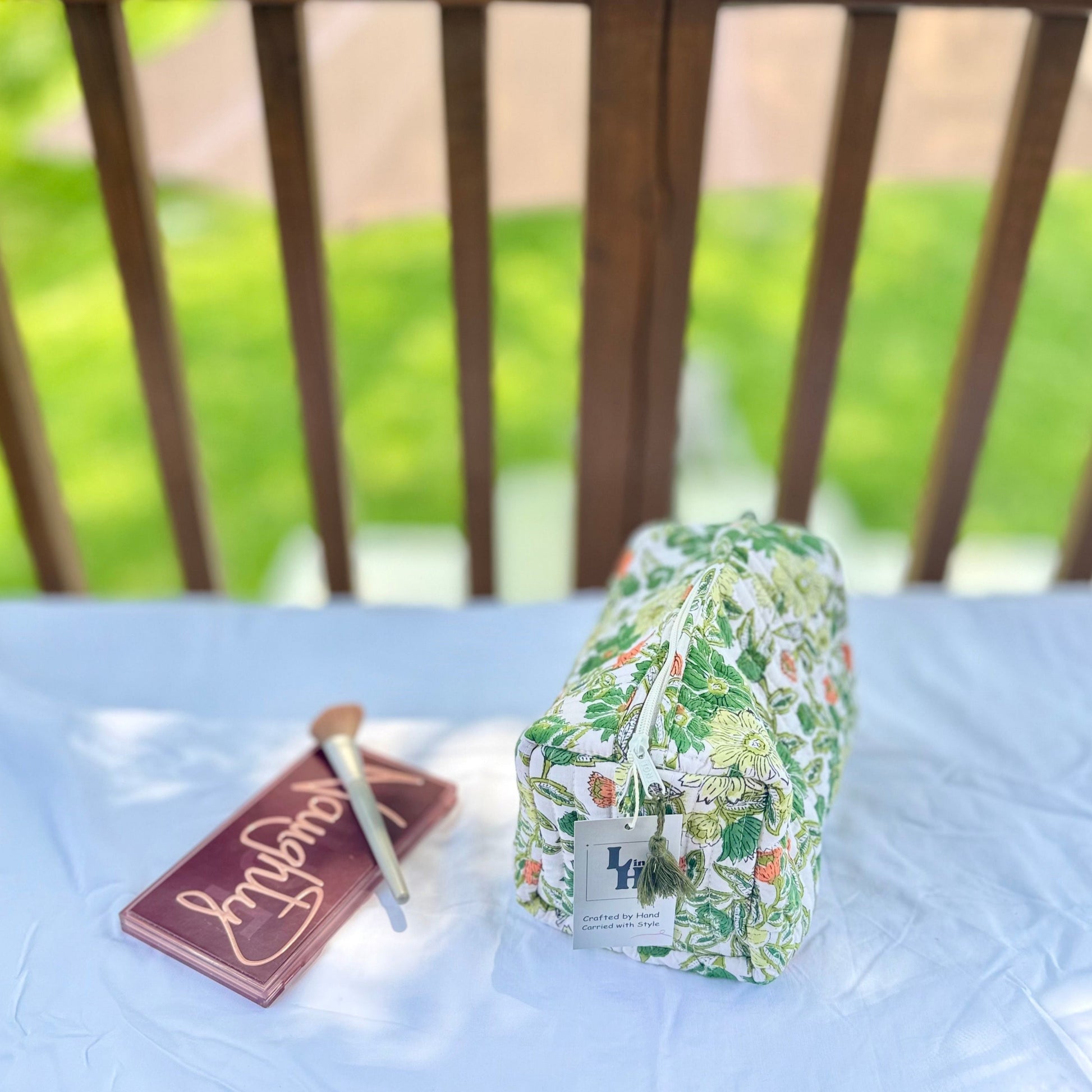 Crafted from hand block-printed cotton and finished with wooden beaded tassels, our Everywhere Pouches are as stylish as they are functional. With a waterproof lining and two inner pockets, they’re perfect for organizing makeup, travel essentials, stationery, or kids’ items.