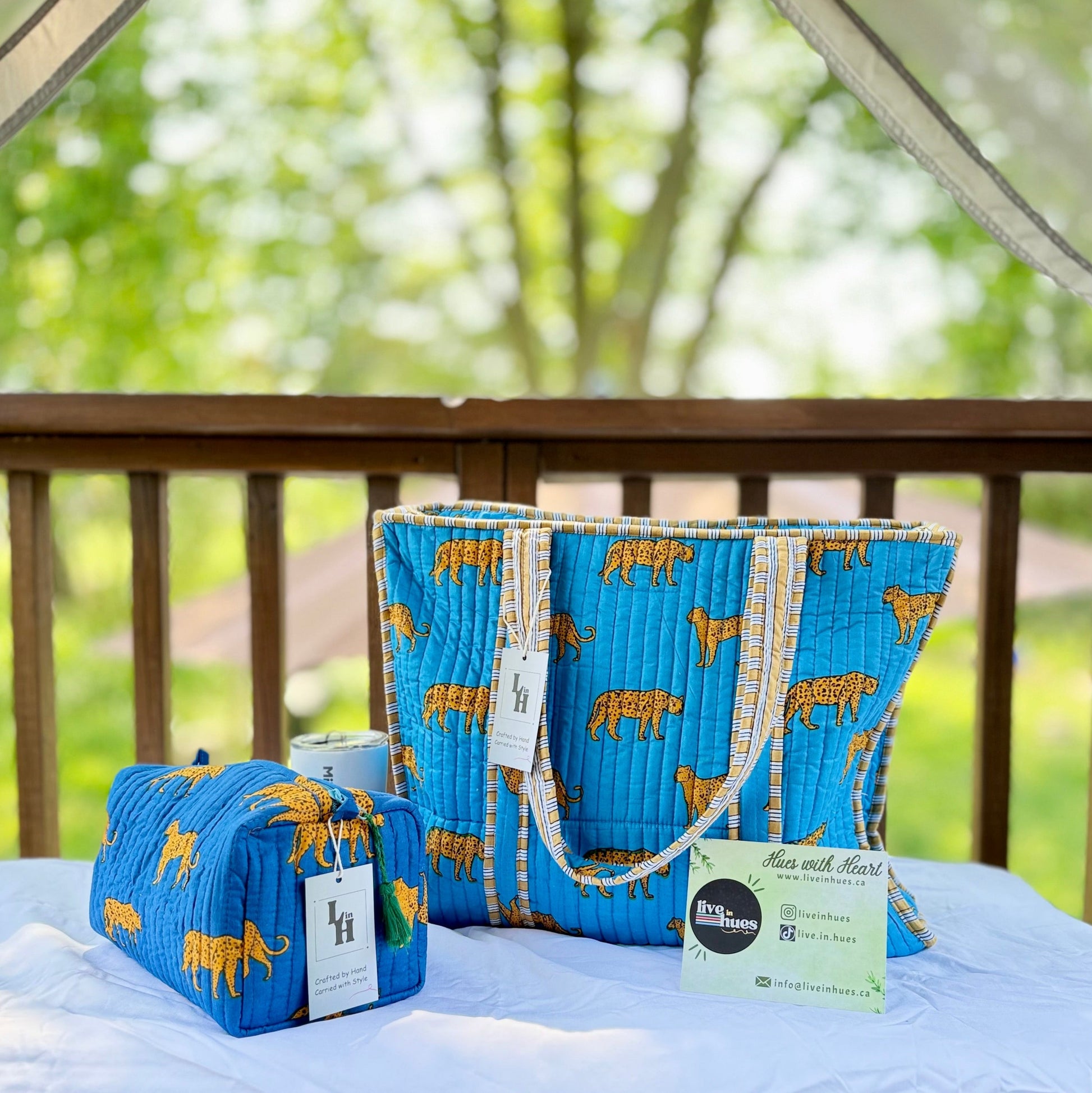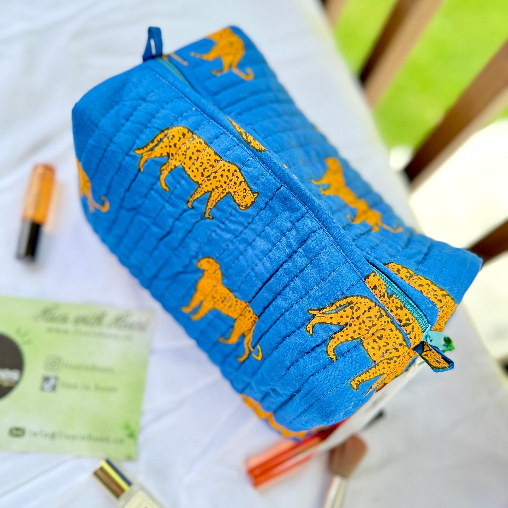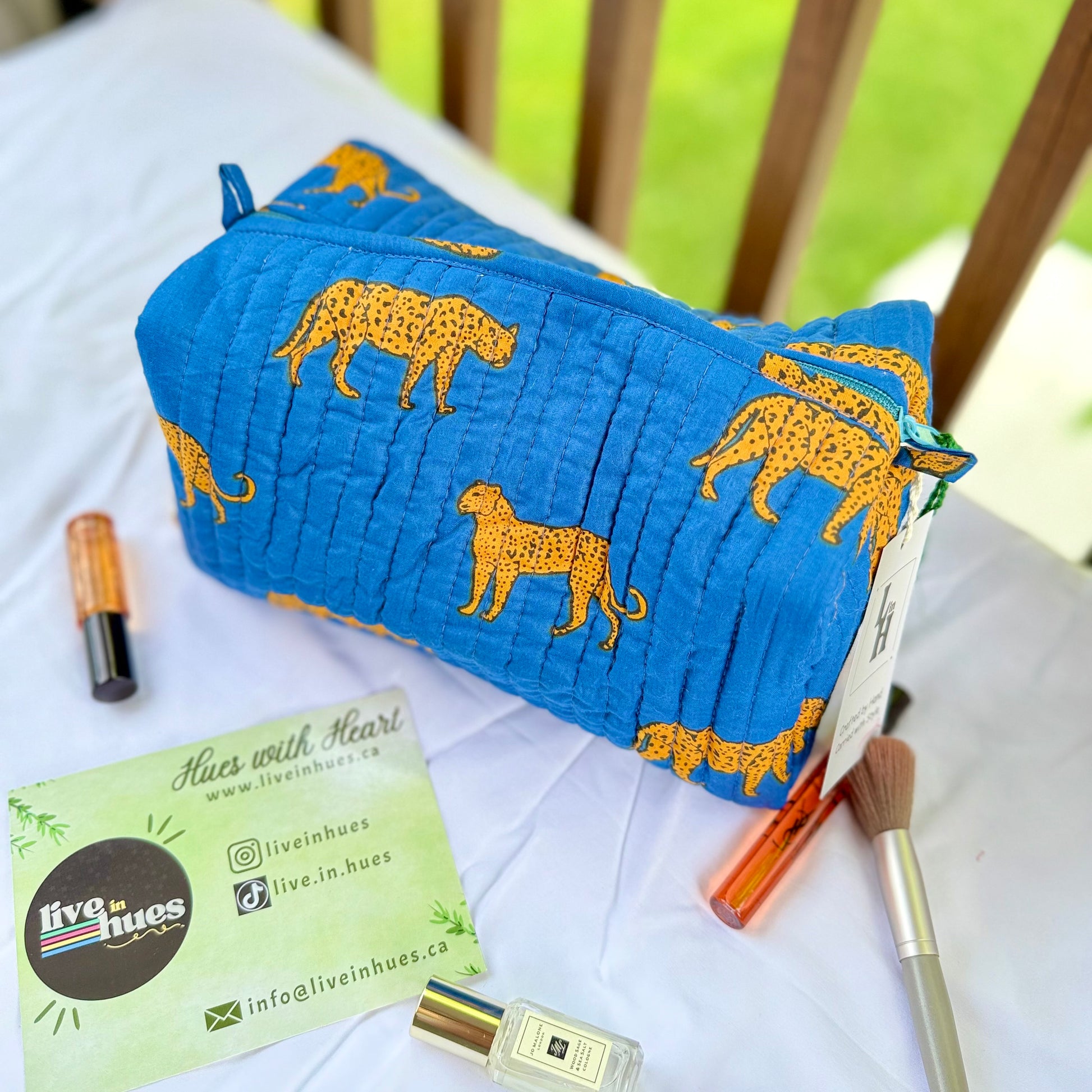 Crafted from hand block-printed cotton and finished with wooden beaded tassels, our Everywhere Pouches are as stylish as they are functional. With a waterproof lining and two inner pockets, they’re perfect for organizing makeup, travel essentials, stationery, or kids’ items.