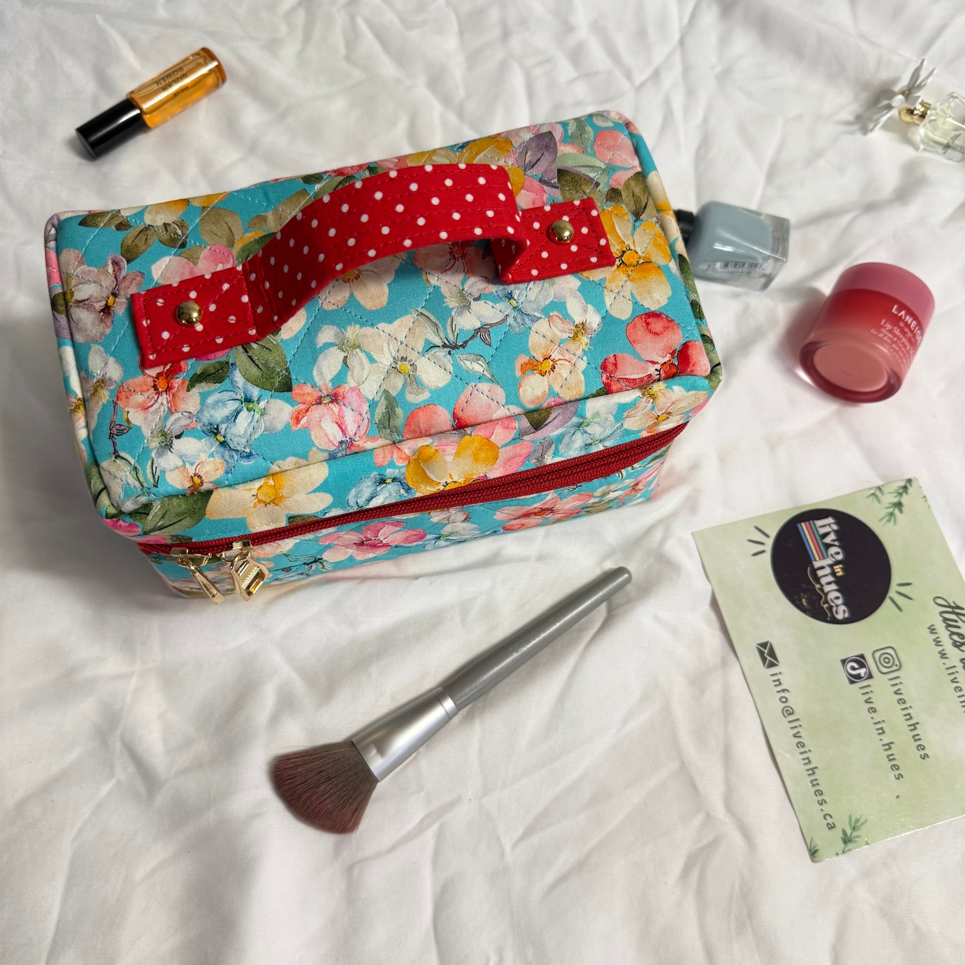 Our handcrafted vanity bags—also known as makeup or cosmetics pouches—are designed to keep your beauty and grooming essentials neatly organized and easily accessible. Featuring a waterproof plastic lining and three inner pockets, these spacious pouches are perfect for makeup, travel necessities, or even kids’ essentials.