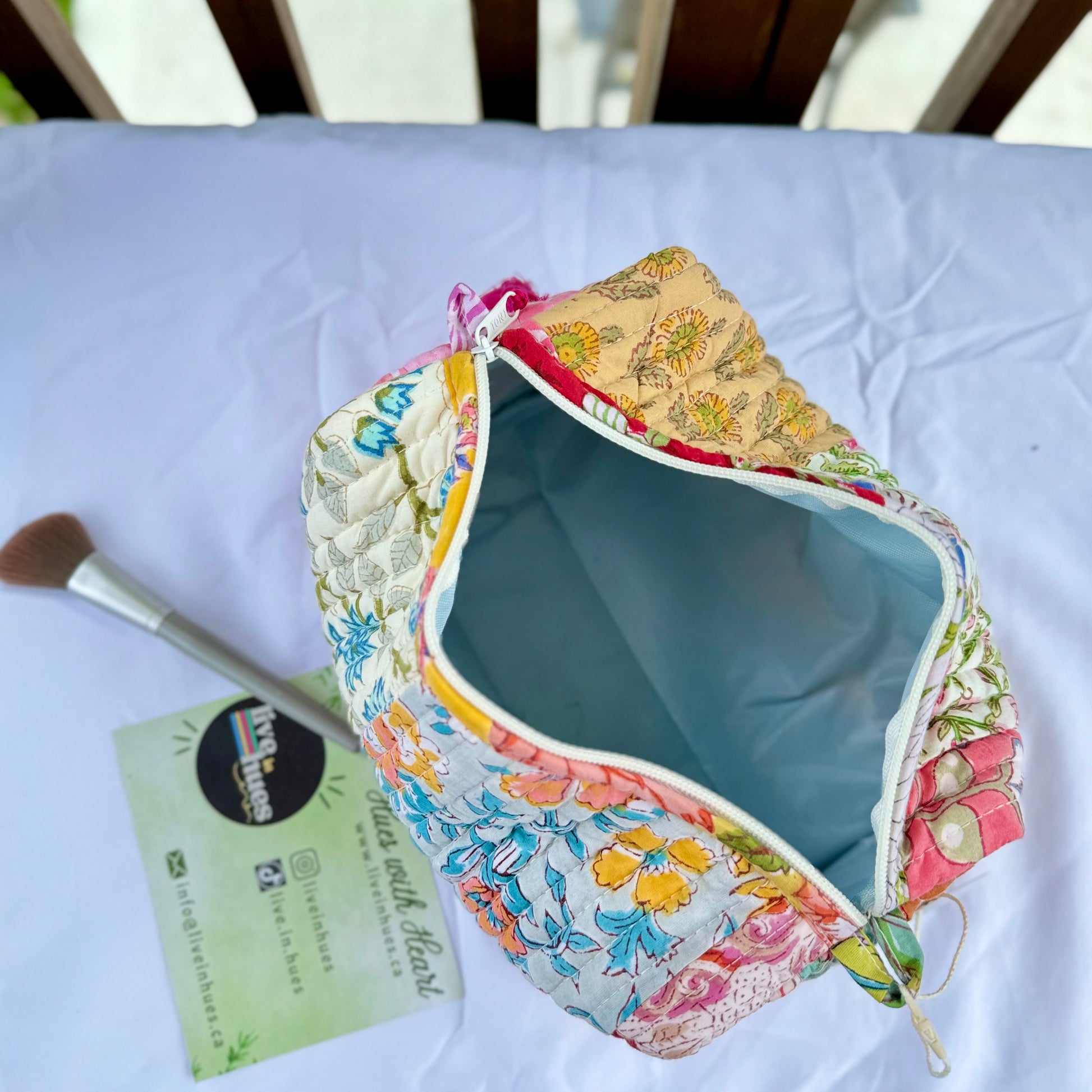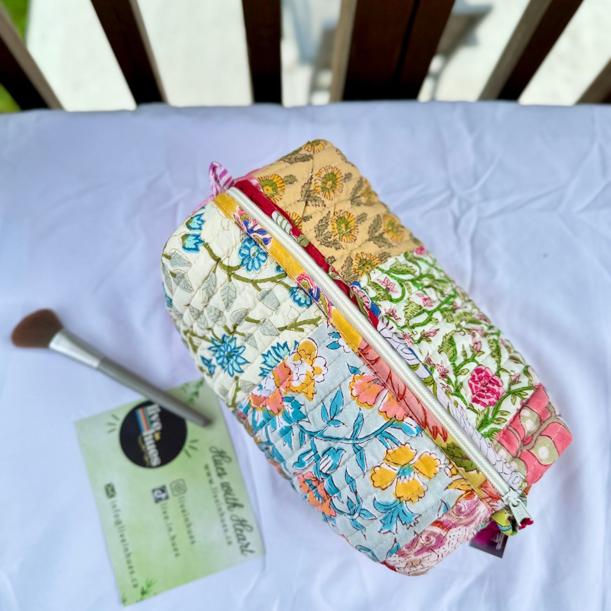 Crafted from hand block-printed cotton and finished with wooden beaded tassels, our Everywhere Pouches are as stylish as they are functional. With a waterproof lining and two inner pockets, they’re perfect for organizing makeup, travel essentials, stationery, or kids’ items.