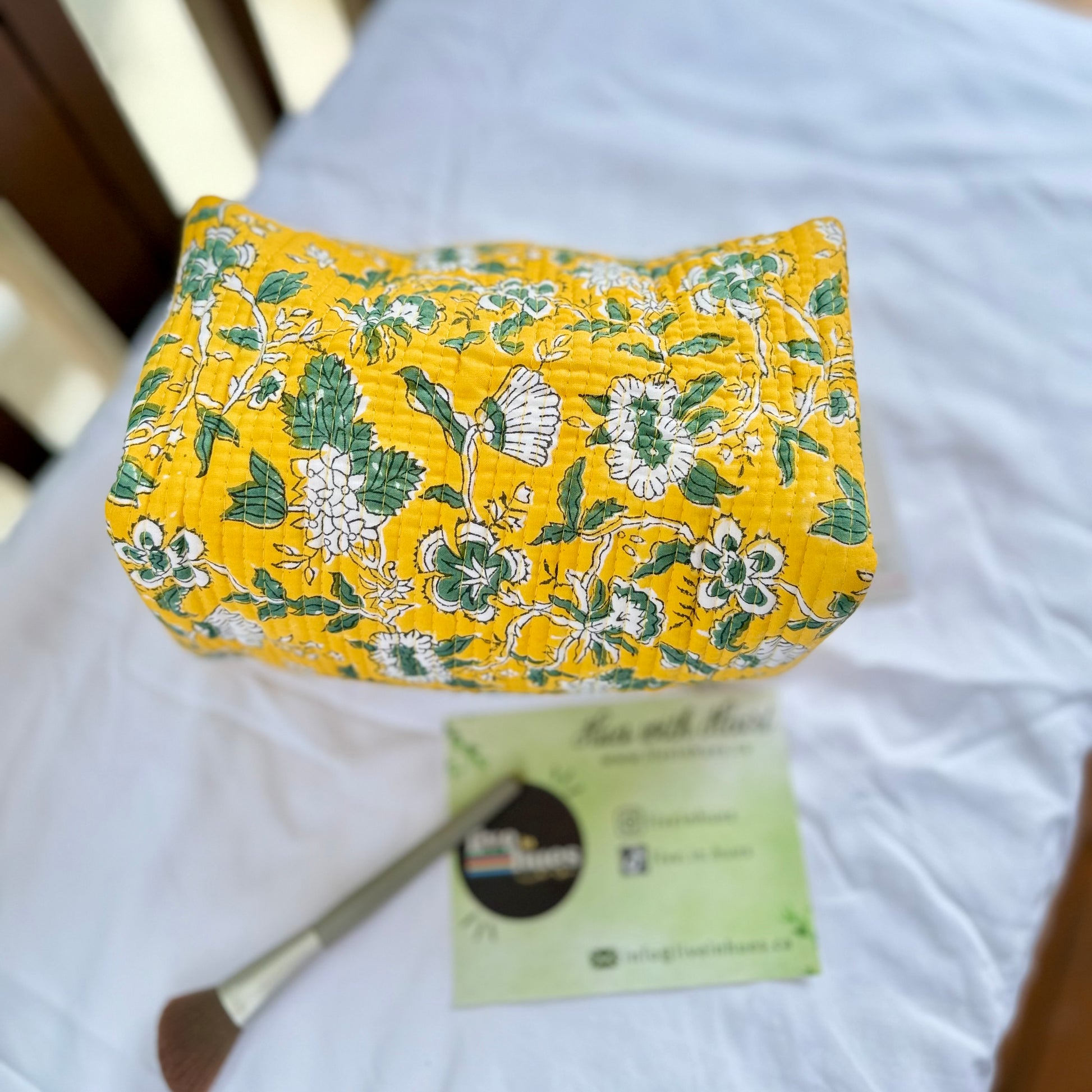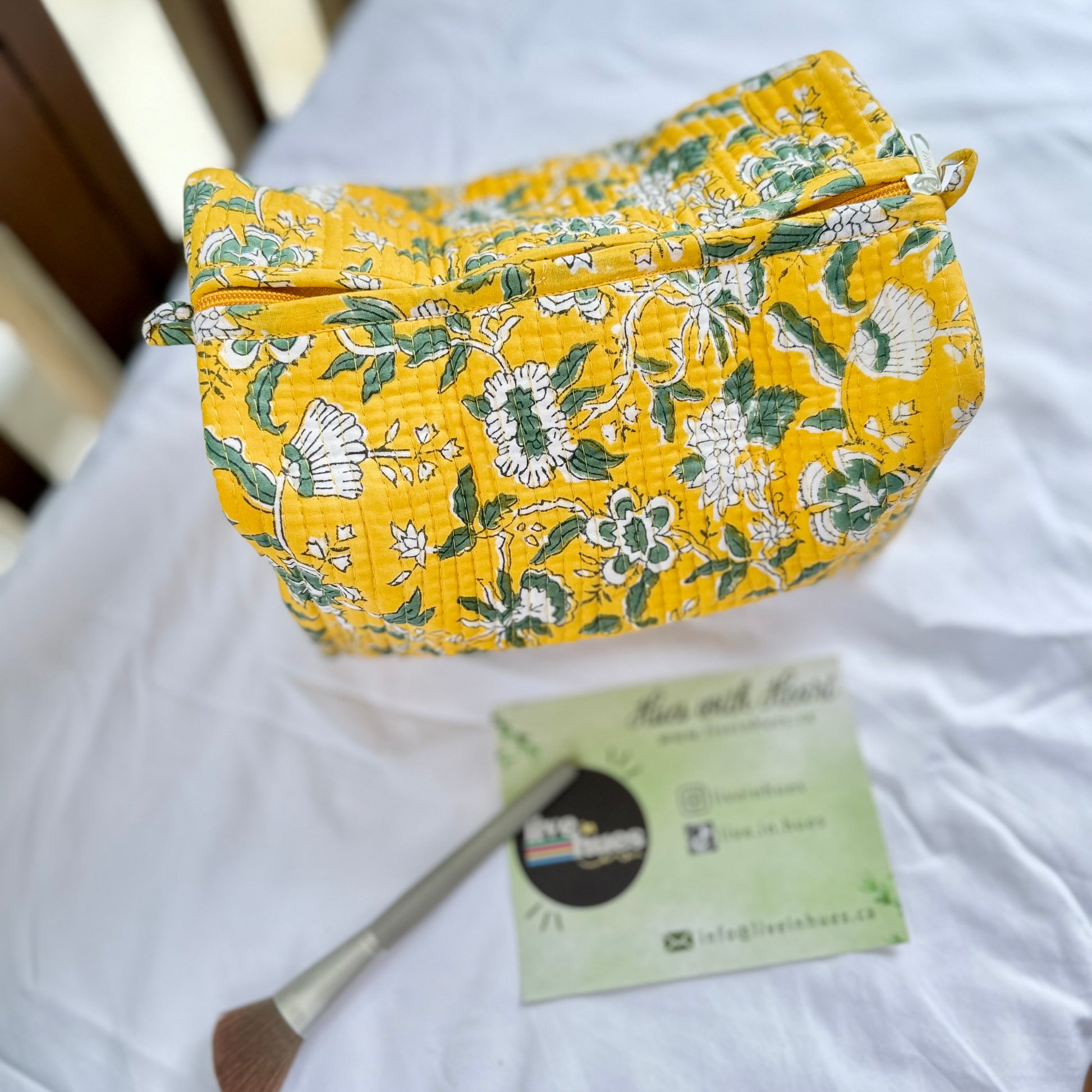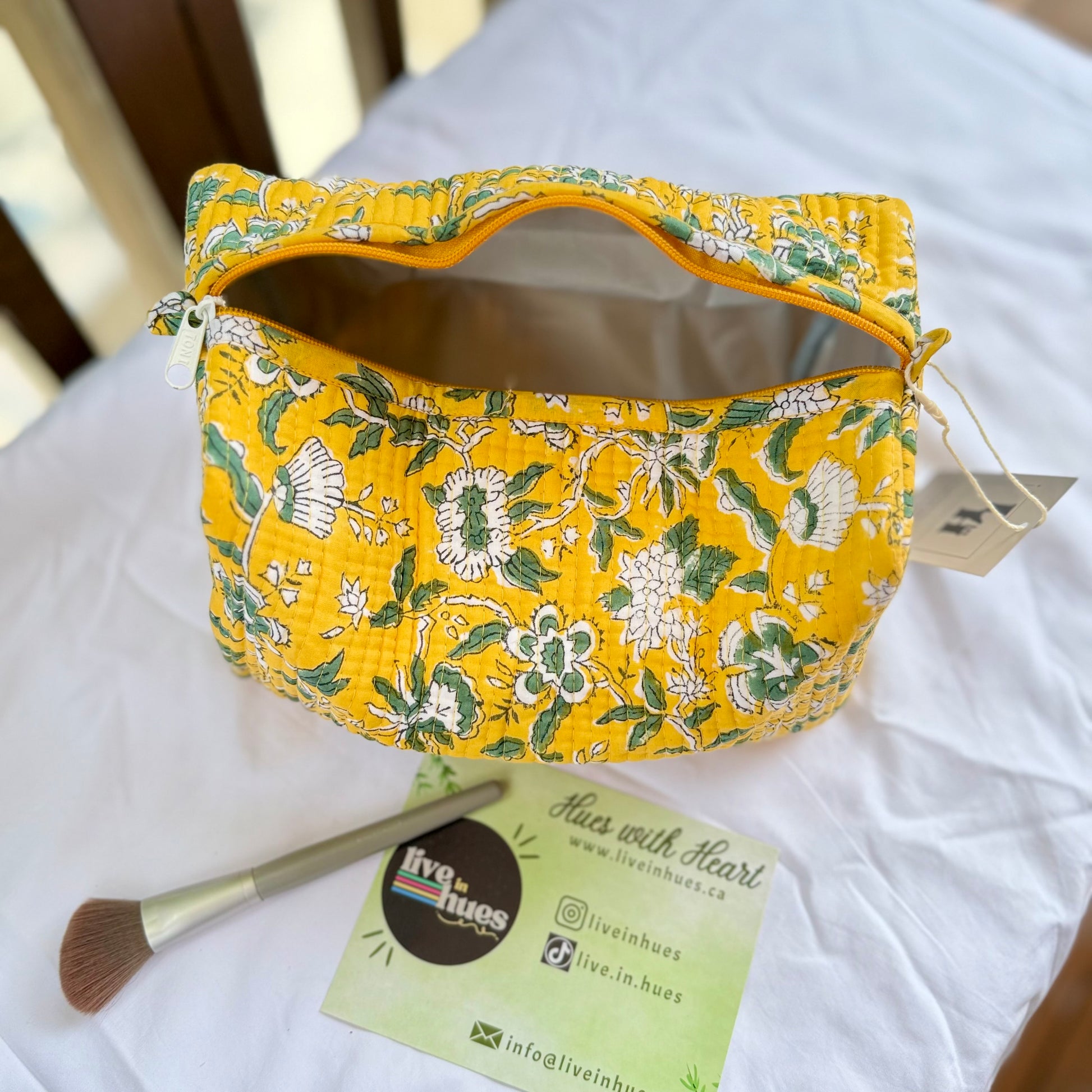 Crafted from hand block-printed cotton and finished with wooden beaded tassels, our Everywhere Pouches are as stylish as they are functional. With a waterproof lining and two inner pockets, they’re perfect for organizing makeup, travel essentials, stationery, or kids’ items.