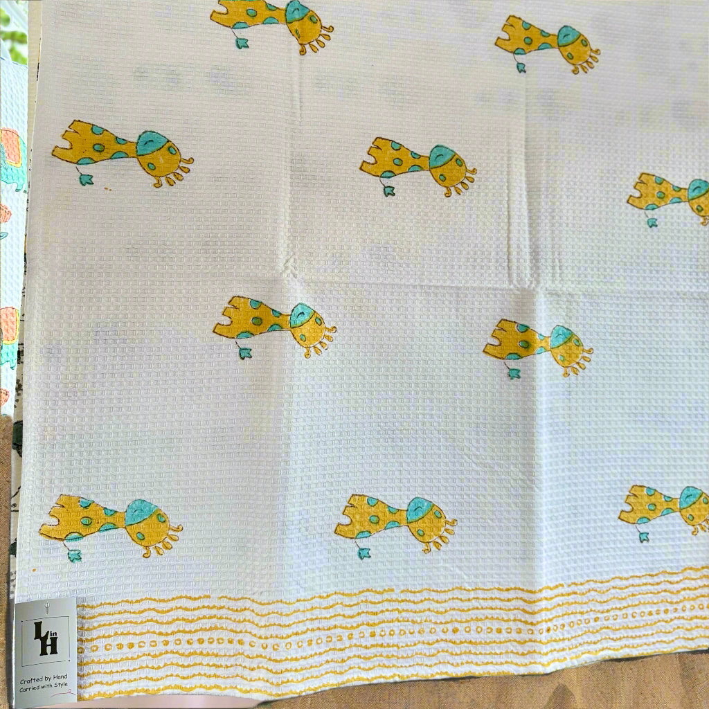 Our Wrap & Repeat towels are made from 100% pure cotton and hand-block printed. Each towel features one-of-a-kind patterns — from playful prints for little ones to sophisticated motifs for grown-ups — making bath time a colorful ritual for all ages.