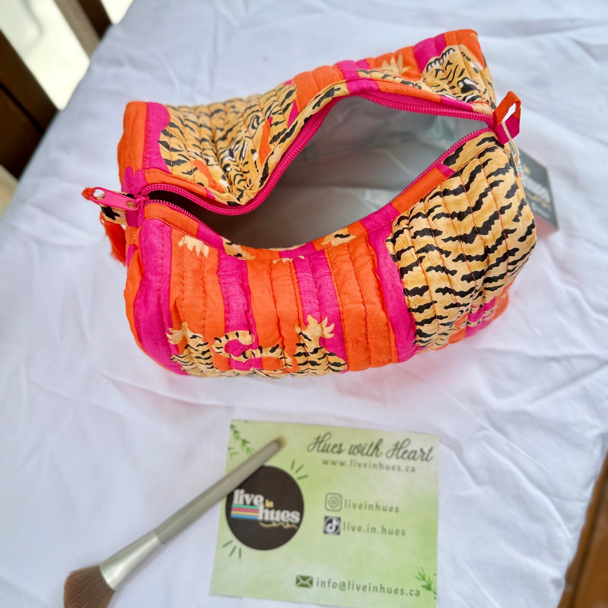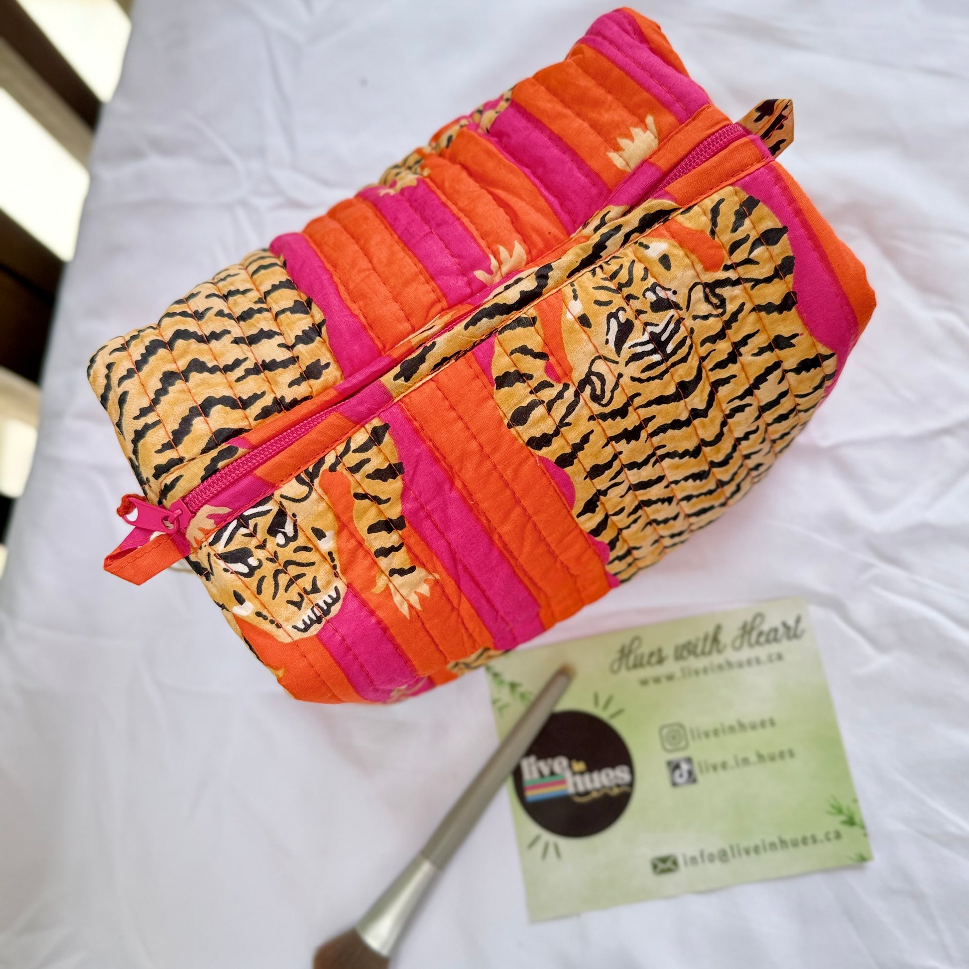 Crafted from hand block-printed cotton and finished with wooden beaded tassels, our Everywhere Pouches are as stylish as they are functional. With a waterproof lining and two inner pockets, they’re perfect for organizing makeup, travel essentials, stationery, or kids’ items.